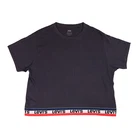 Levi's Oversized Tape Hem T-Shirt XS P2P 22" Slouchy Relaxed Black Graphic J.V Levi's Titled on their site as 'Graphic J.V. Tee Shirt' Has a very oversized / relaxed / slouchy fit Black short sleeve crop T with Levi logo repeat tape hemline Size XS but very oversized - see measurements below could easily fit a UK 12, unsure on sizing after that MEASUREMENTS (Flatlay, approx): -Chest (pit to pit): 22 inches / 56 cm -Length (from shoulder): 21.5 inches / 54.5 cm Most of our items are sent in 100% bio-degradable, recyclable mailing bags, or sometimes re-used packaging, to help the planet. UK shipping is Royal Mail Tracked 48 (unless otherwise stated) so you can keep up with the progress. Any questions, please ask - I normally reply within a few hours. Also, happy to consider offers.