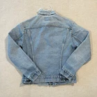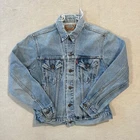 Worn to perfection vintage Levi’s women’s jacket Trucker style with pockets on front and adjustable waist No size tag, measures as women’s M Fraying around neck with the perfect vintage fade In great condition, please see photos for details A