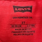 Dress up your little boy in this stylish Levi's T-shirt, featuring a red color with an embroidered logo. The shirt is made of a comfortable blend of polyester and cotton, ensuring a relaxed fit for your child. This short-sleeved crew neck tee is perfect for casual occasions, whether it's a day at the beach or just hanging out. The shirt is available in size 3T, suitable for boys aged 2-3 years. It has a pullover closure and is designed with solid patterns. This T-shirt is a great addition to your child's wardrobe, representing the Levi's brand and style. Check pictures for flaws and measurements