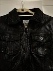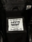 Elevate your style with this Levi's Vintage Leather Jacket in size M and black color. The jacket features a solid pattern, short length, and a full zip closure with accents of a zipper. The outer shell material is made of high-quality leather with a cotton and polyester lining for added comfort. This Levi's Trucker style motorcycle jacket is perfect for unisex adults and can be worn in any season, be it winter, fall, or spring. The jacket is collared and comes with a variety of features such as a full zip closure, making it a versatile addition to your wardrobe. Get ready to turn heads with this stylish jacket from Levi's.