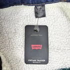 Levis Vintage Trucker Jacket Lining Denim & Fleece Reversible Relaxed Fit Size Large Condition is new with tag. This Levi's Vintage Trucker Jacket is a versatile piece, offering a stylish denim exterior and a cozy fleece interior. Its reversible nature allows for two distinct looks, making it both fashionable and functional. The sherpa lining provides warmth and comfort, ideal for chilly days. The relaxed fit ensures ease of movement and a casual appeal. • Reversible design: denim & fleece • Sherpa lining for warmth • Button front closure • Two front pockets • Long sleeves with button cuffs Chest width = 24 inches Length = 27 inches