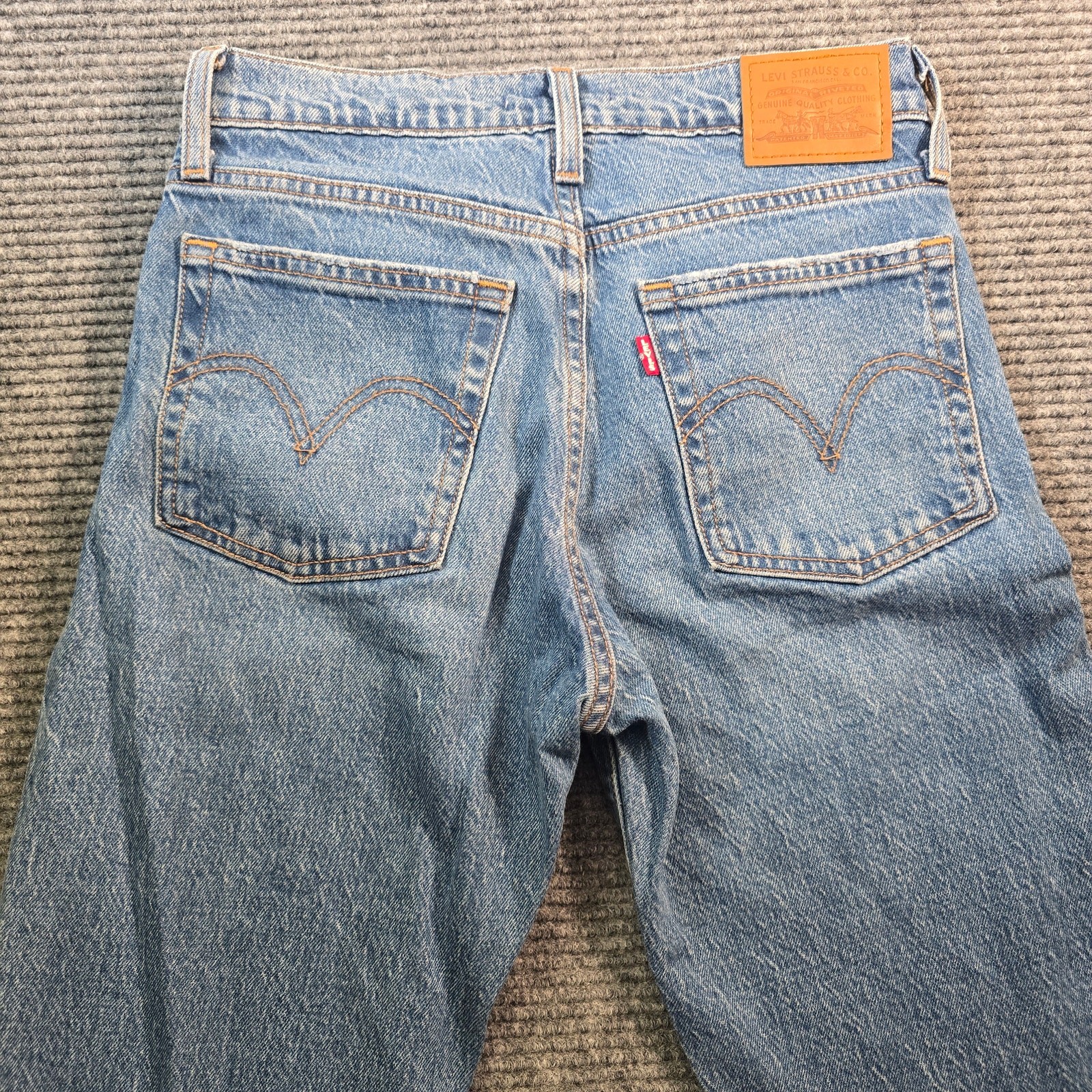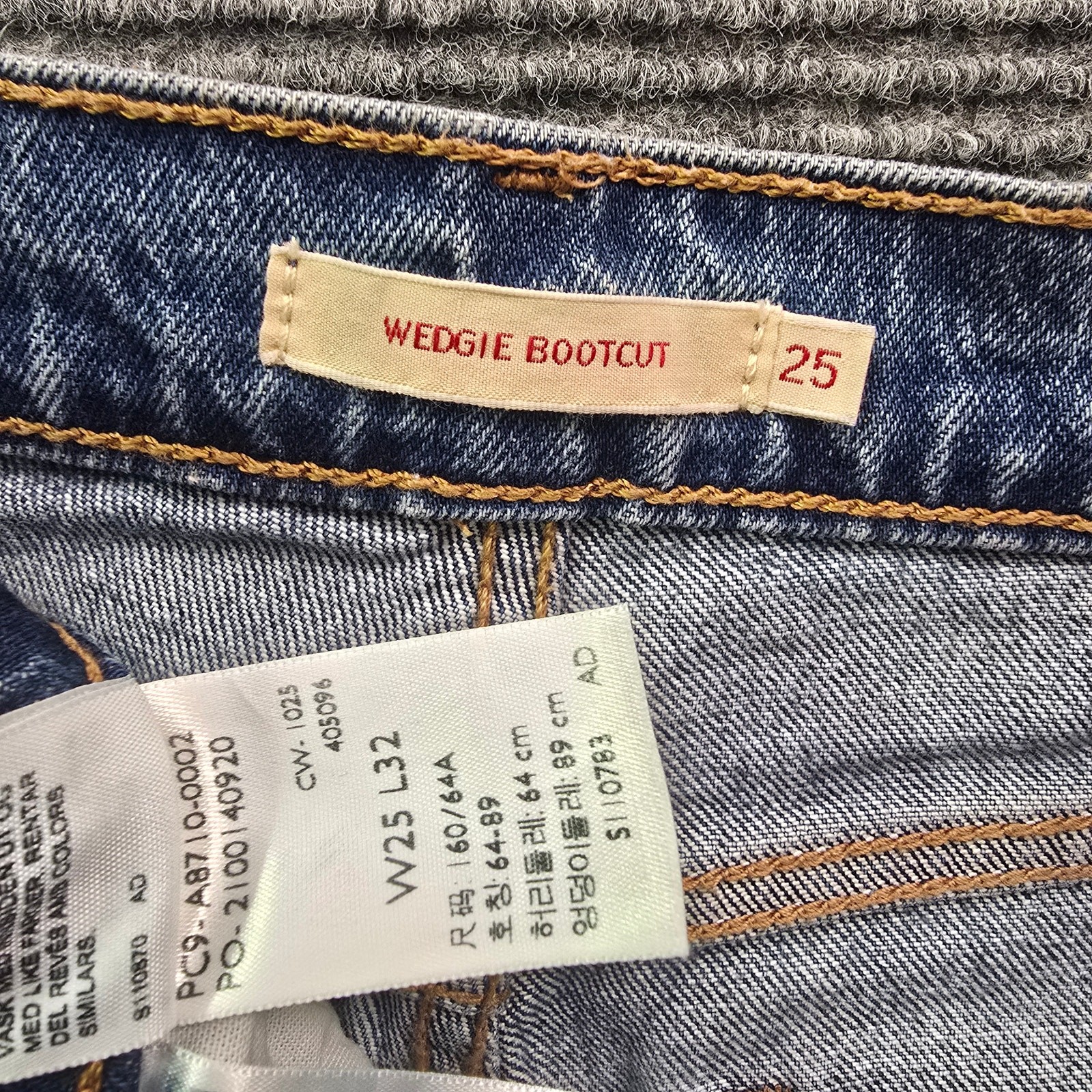 Classic Levi’s wedge bootcut jeans in a medium blue wash with subtle fading throughout. Features a low-rise fit with a flattering bootcut leg, perfect for pairing with boots or heels. Timeless five-pocket styling with signature Levi’s details for everyday wear. Color may vary slightly from photos due to lighting and monitor settings. Details: Brand/Model: Levi’s Wedge Bootcut Style: Bootcut, Low Rise Color/Wash: Blue Medium Wash Size: Tag size W25 L32 Fabric: 99% Cotton, 1% Elastane Condition: Pre-owned, good condition with normal wash wear Key Note: Button fly, classic wedge bootcut silhouette