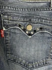 NO NOTICEABLE FLAWS! Waist: 30 inches Inseam: 30 inches PLEASE SEE ALL MEASUREMENTS IN LAST PHOTO! These Levi's jeans are designed for women in a size 7 with a waist size of 30 inches and a low rise fit. The bootcut style features studded accents, a Western Y2K vintage theme, and a blue denim fabric wash. Made of a blend of spandex and cotton, these jeans have a distressed hem, slimming fit, and stretch material for comfort. The design also includes embroidered and logo accents, reflecting a retro 80s and 90s vibe with a hint of boho and cowboy flair. Ideal for winter, fall, and spring, these Levi's jeans offer a unique and stylish addition to any wardrobe.