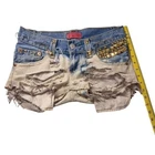*Levis Women's Distressed Bleach Dyed Studded Denim Jeans Cut Off Shorts Size 9 *Brand - Levis *Women's Distressed Bleach Dyed Studded Denim Jeans Cut Off Shorts *Size - 9 *Color - Blue & Beige *Condition - Excellent (pre-owned) *Please see all the photos in Zoom to appreciate the details. (Check for all the sizes on some of the pictures from above because these shorts don't have the tag with the size on it) (There's some studs that could be possibly missing) (Please check the 16th photo to see that left bag is complete & the right bag is a bit ripped.) *Smoke Free Home *I described this product the best way possible. *If you have any questions, please let me know. Thank you.