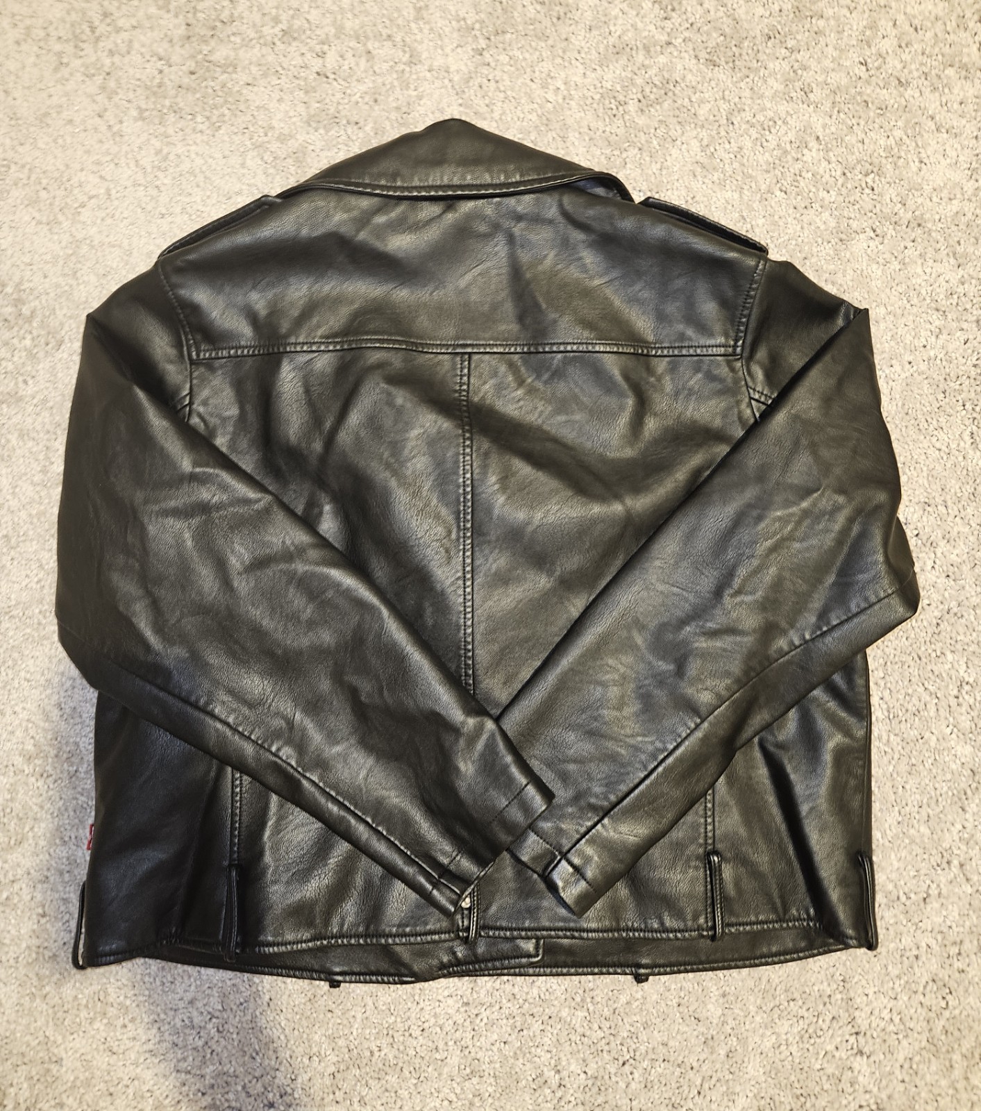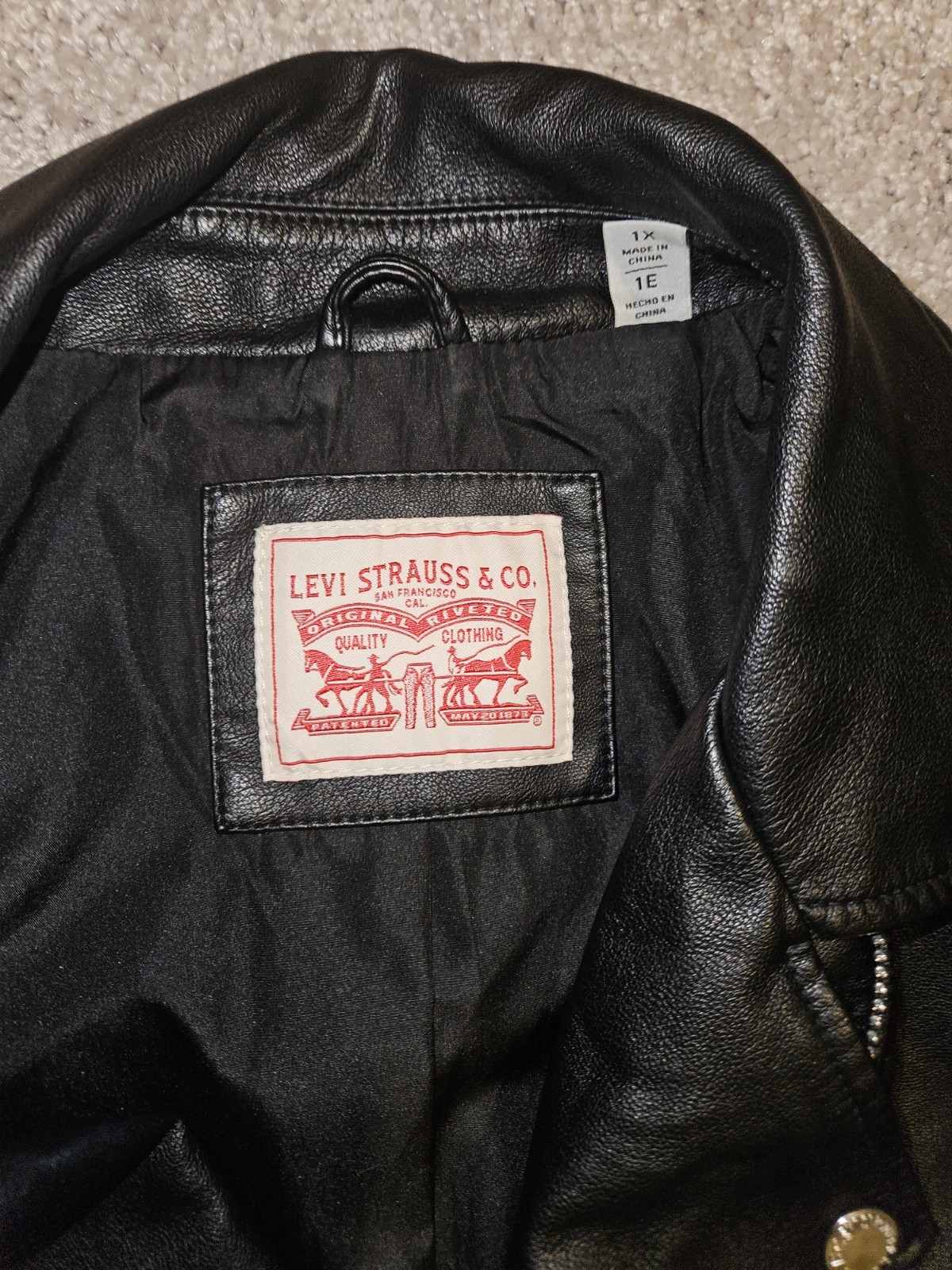 Levi’s Women’s Faux Leather Moto Jacket – Black – Size 1X Stylish women’s Levi’s faux leather moto jacket in a classic black color. Size 1X. Features an asymmetrical front zipper, polished metal hardware, zippered pockets, epaulet shoulders, and soft interior lining. Levi’s red tab on the side seam. A great everyday jacket with that timeless biker look. Condition: Gently used and in excellent condition. No major flaws. All zippers and hardware work great. Details: Brand: Levi’s Size: 1X (Women’s) Color: Black Material: Faux leather Style: Moto / Biker jacket Features: Asymmetrical zip, zip pockets, epaulets, metal hardware, soft lining Ships fast & folded with care. Comes from a smoke free home. Washed and sanitized. Condition as shown in pictures. Comes as is. No refunds. Measurements provided upon request. Feel free to message with questions or reasonable offers! Thanks for taking a look!