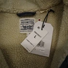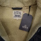 This sherpa-lined Levi's denim jacket combines warmth and style with its cozy hoodie and relaxed silhouette, ideal for layering in cooler weather. • Features a button-front closure • Two chest flap pockets with button closures • Sherpa-lined for added warmth • Hood adds functionality and style • Medium wash denim finish There is a minor blue tint on the hoodie, but overall in excellent condition. Top to bottom = 19 inches, pit to pit = 20 inches. Sleeve Length = 20 inches, Sleeve End Width = 9 inches.