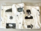 NEW IN BAG! This Levi's X Universal Monsters Jacket in size 2XL features a white denim fabric with a snap closure and button accents. It is a long chore coat style with a collared neckline, lightweight design, and unlined construction. The jacket has pockets and is suitable for all seasons, making it a versatile choice for parties, casual wear, or walking activities. The design is themed around Universal Monsters.