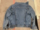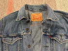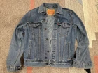 Levi's denim trucker jacket. Size small. Faded blue color. Approximately 8 years old, excellent condition with no missing buttons or holes. Measurements: Length: 25.5 in Chest: 18.25 in Shoulder: 17.5 in Sleeve: 24 in Waist: 17.5 in