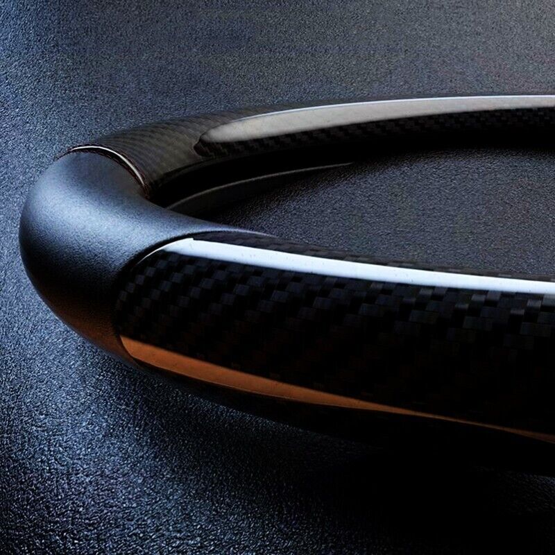 Descriptions: Material: Carbon Fiber, Leather Universal Fit: 14.5-15"& 37-38cm Round Steering Wheel Color: White Feature: Anti-slip cover make you feel good when driving, protect your steering wheel from damage. Package included: 1x Steering wheel cover