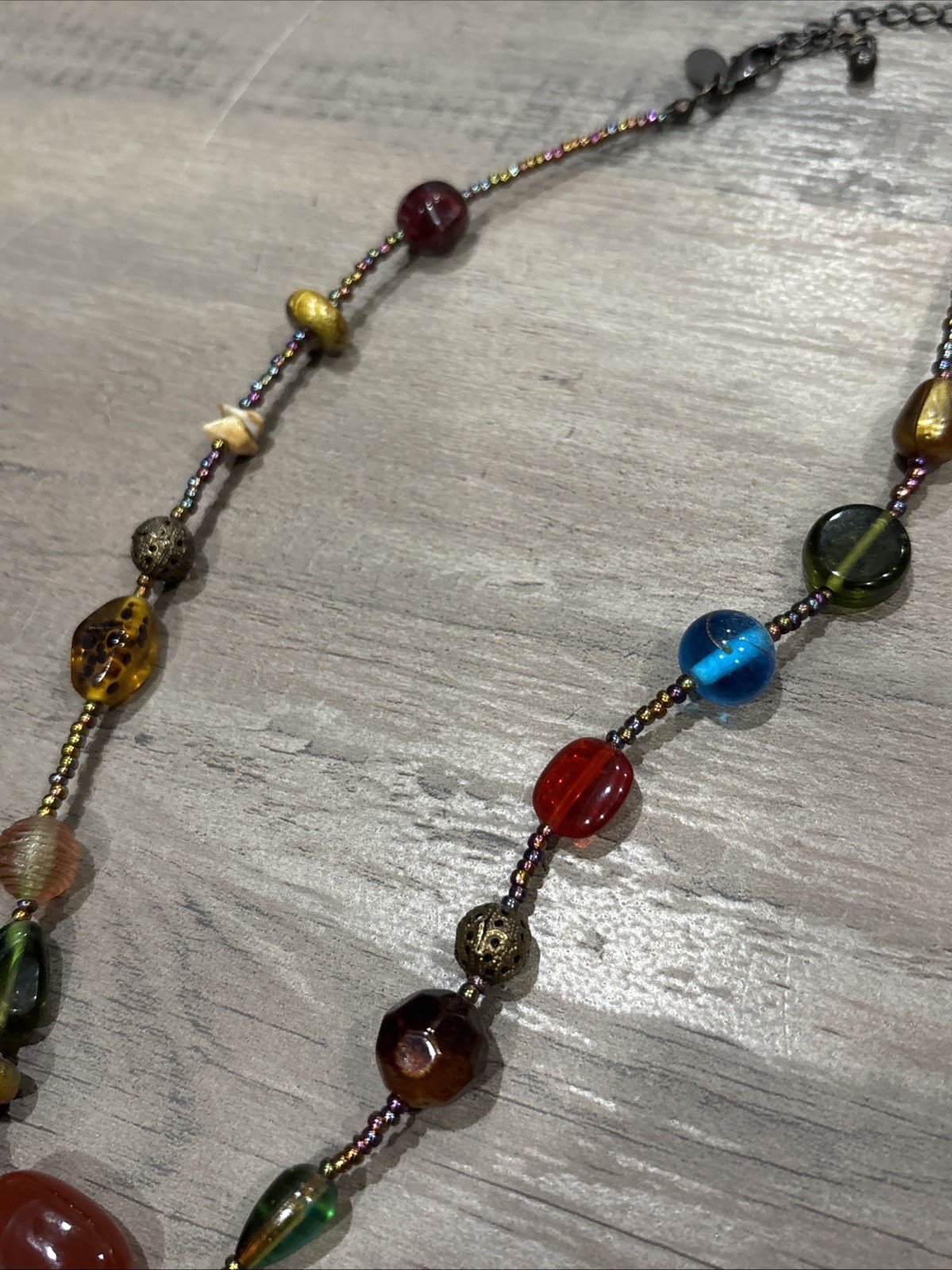 The Lia Sophia Beaded Multi Color Necklace Set of 2 is a stylish and colorful accessory that showcases beauty and bohemian fashion. These adjustable necklaces are signed by the brand and feature a beaded design in multicolor. Perfect for adding a pop of color to any outfit, these necklaces are a versatile and fashionable addition to your jewelry collection.