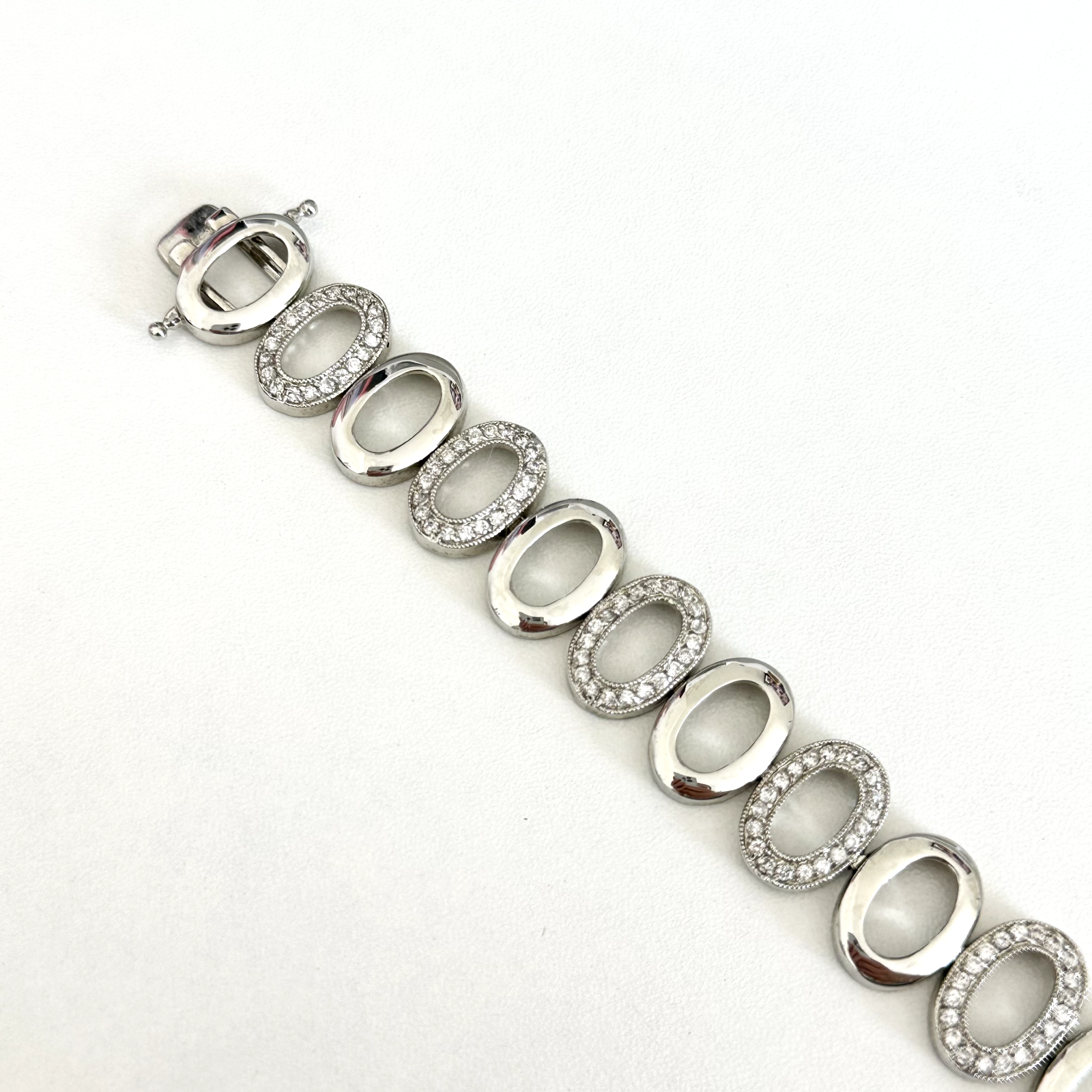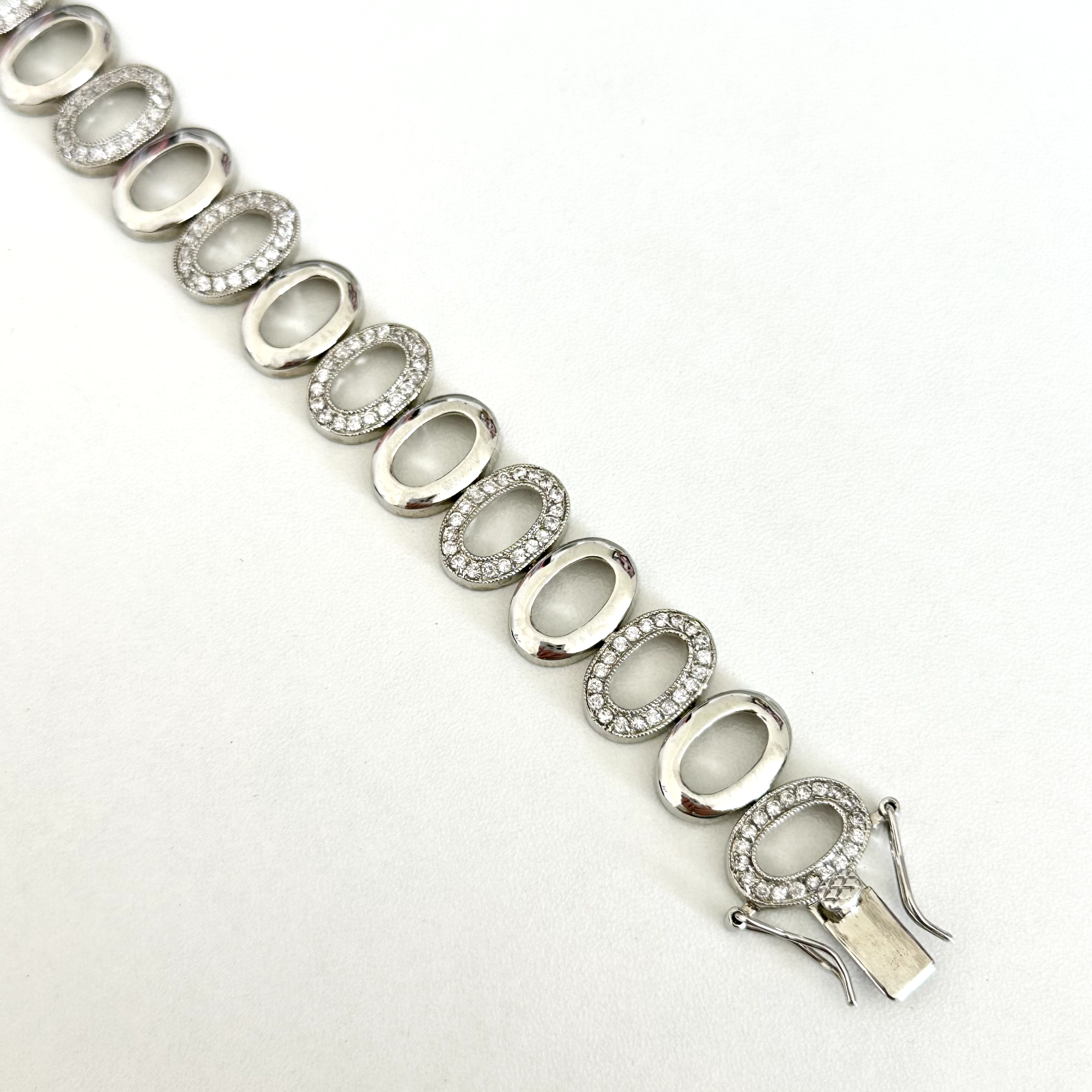 Lovely Lia Sophia Mesmerize Silver Tone Clear Rhinestone Open Oval Link Bracelet 7" Length: 7" Width: 16mm Signed: LS Very good condition. - Fast shipping, I ship the same or next business day! I also combine shipping. - Thank you so much for shopping with me and please check out my other jewelry listings, I post new items daily!