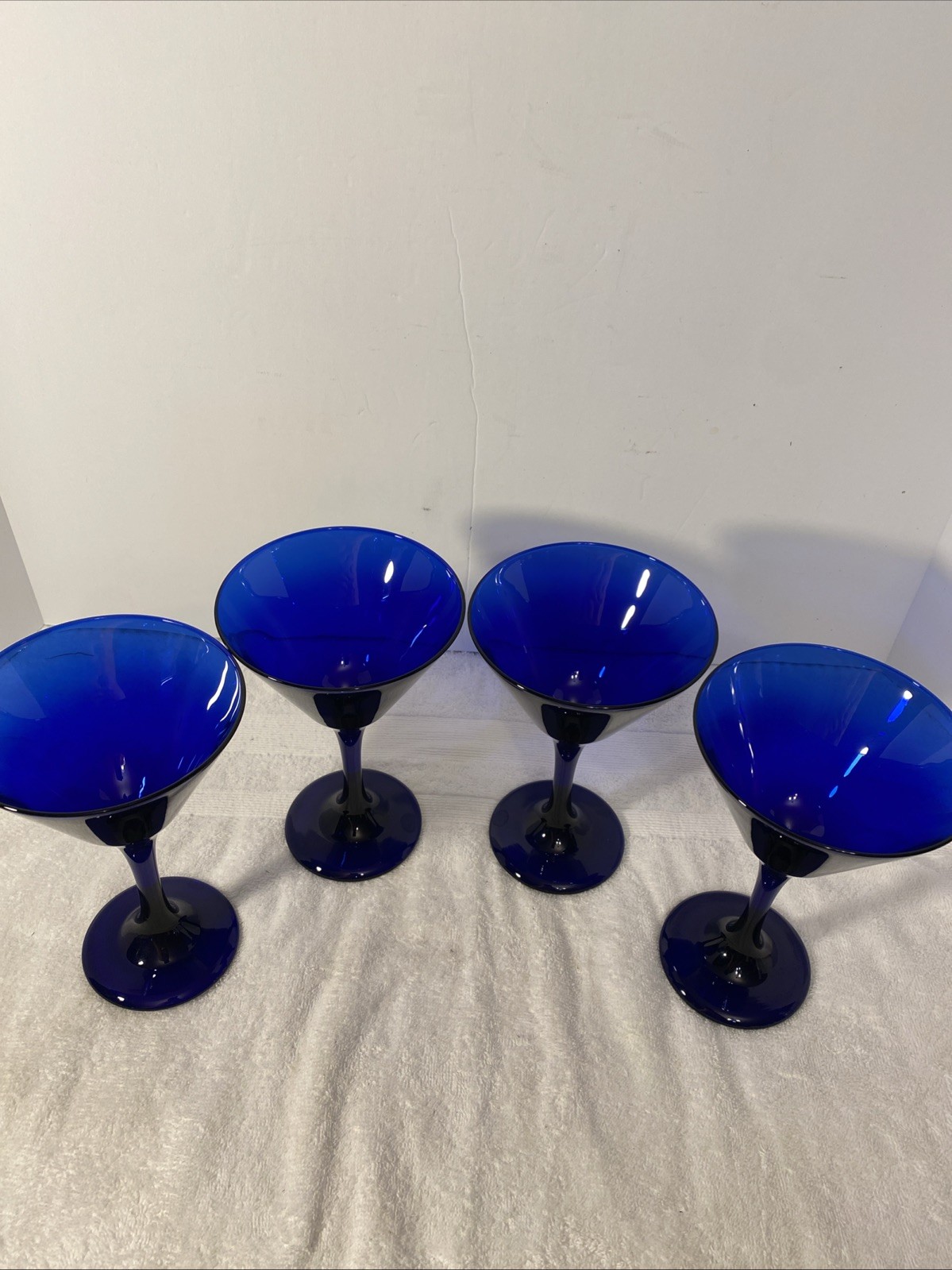 Set of 4 Libbey 6.5" Dark Cobalt Blue Martini Glasses Wine Cocktail Party Goblet. Condition is Used. Shipped with USPS Ground Advantage.