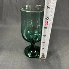 4 Libbey Tulip Stemmed Water Goblet - Holiday Juniper Green Glasses - Gold Rim. Dark Green, Smooth Stem, Gold Trim Pattern: Tulip Dark Green by Libbey Glass Glasses are in great condition, No chops, no cracks, no scratches, no gold color faded. Please see photos for measurements and details. Thank you for looking.