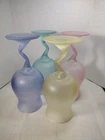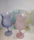 Beautiful cocktail or large juice goblets zigzag stems these have been in a closet satin frosted look. No Chips No Cracks. Holds 12 ozs