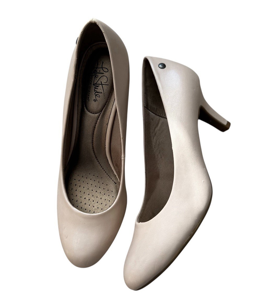 New Life Stride Parigi Shoes Women’s Size 9.5W White Vinci Heels Soft System