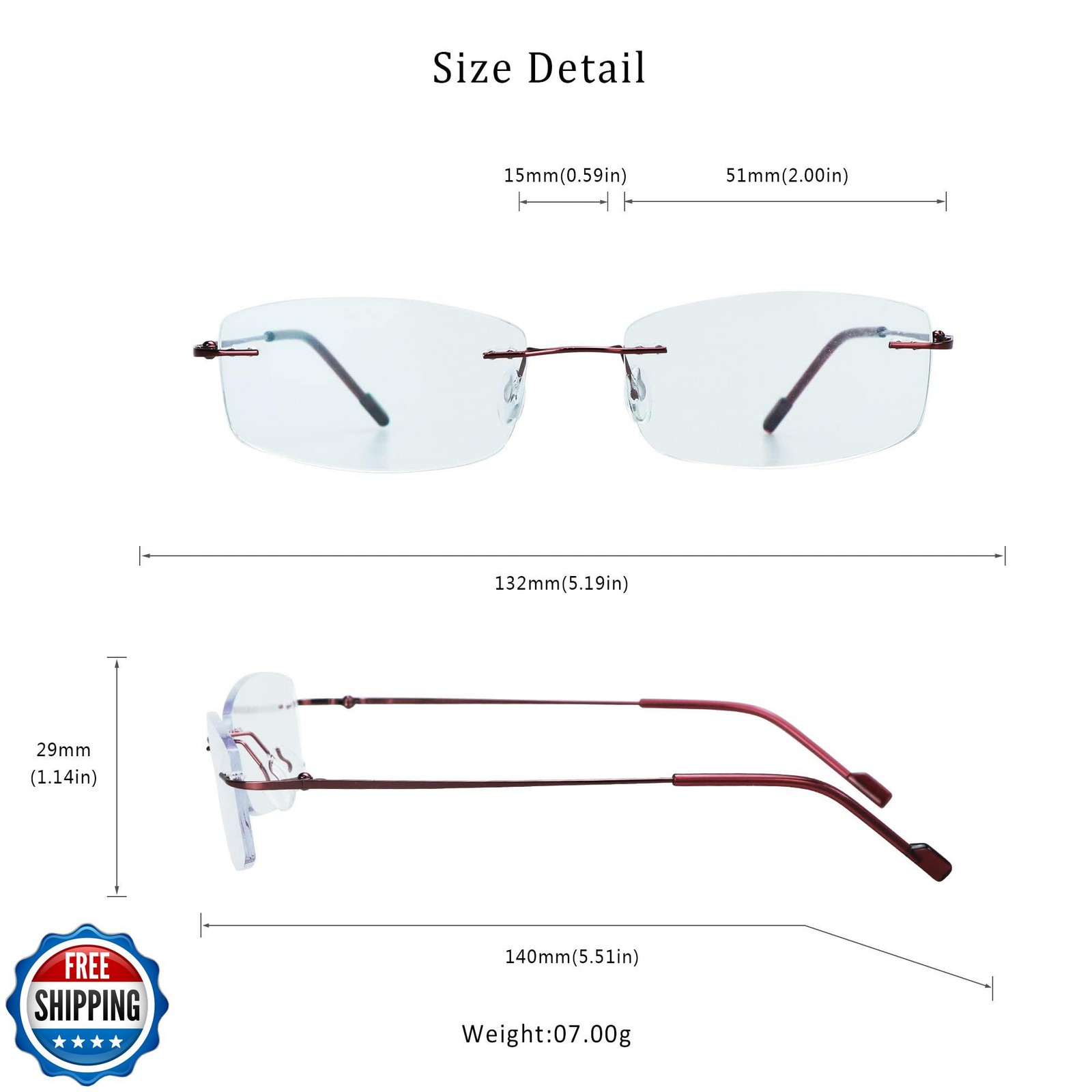LifeArt Blue Light Blocking Computer Reading Glasses, Men’s and Women’s Rimless Frame, Anti Eyestrain, +2.50 Magnification Features Advanced Blue Light Blocking Lenses: Reflect and filter blue light with a 7-layer anti-reflective coating, reducing glare, preventing color distortion, and improving sleep by minimizing eye-strain during screen time. Superior Clarity & Durability: High light transmittance helps ensure no noticeable yellow tint, maintaining true colors, while the ultra-thin 10μm multi-layer coating enhances scratch resistance and lens longevity. Customizable Magnification Options: Available in strengths from +0.00 to +4.00, these magnified lenses provide sharp focus for close-up tasks like reading, working on laptops, or viewing screens. IMPORTANT: Please select the correct magnification so your order can be properly filled. The one you choose now is +2.50 Magnification Lightweight & Versatile Design: Classic rimless design with an ultra-lightweight build (0.28oz) create a comfortable, universal fit suitable for most face shapes and all-day wear. Refer to images for glasses dimensions. Premium Quality Assurance: Our eyewear is designed to meet the highest standards of durability and performance. We have a 30-day free return policy. Contact us anytime for support or if you experience any issues. Shipping Free & Fast Shipping: We offer free shipping to most of the USA with a normal delivery time of 3-7 days. However, due to the current situation, additional delivery time (up to 3 weeks) may be required for some items. Alternative Carriers: We may use alternative carriers (e.g., USPS, FedEx, UPS) to ensure your package arrives safely and on time. Due to the use of multiple carriers, we are unable to provide a tracking number automatically. Handling Time: Orders are processed and shipped within 1-2 business days of receiving cleared payment. Shipping Restrictions: Shipping to Alaska, Hawaii, Puerto Rico, Guam, and other US territories may incur shipping charges or delivery restrictions. Please contact us before ordering, or your order can be refunded/cancelled. State Restrictions: Certain items may not be shipped to California due to state regulations. Contact for Tracking Updates: If you require tracking updates or have any concerns about the delivery of your order, please feel free to contact us, and we will be happy to assist you. Return Policy 30-Day Hassle-Free Returns: If you are not completely satisfied with your purchase, you can return the item for free within 30 days of receiving it for a full refund or exchange. Easy Return Process: Contact us, and we will provide you with a prepaid return shipping label and detailed instructions. No Restocking Fee: There are no restocking fees for returns. However, the buyer is responsible for return shipping costs if the return is not due to a seller"s error. Refund Processing: Refunds will be processed within 1 business day of receiving the returned item in its original condition. Feedback Your feedback is extremely important to us. We strive to provide the best products and customer service possible. If you are satisfied with your purchase, please take a moment to leave us a positive review. If you have any concerns or issues with your order, please contact us before leaving negative feedback. We are committed to resolving any problems and ensuring your satisfaction. Contact Us If you have any questions or concerns, please feel free to reach out to our customer support team. You can contact us through the eBay messaging system. We are available Monday to Friday, 9:00 am to 5:00 pm EST, and we will do our best to respond to your inquiry within 24 hours. Thank you for supporting our small family business!