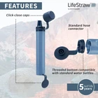 About this item Protects against 99.999999% of bacteria (including E.coli, Salmonella), 99.999% of parasites (including Giardia and Cryptosporidium), 99.999% of microplastics, silt, sand, and cloudiness Enhanced microfilter performance helps to reduce clogging from sand and silt for better flow rate Ultralight and durable, pack it anywhere for your backup hydration, emergency, or on-the-go needs Extreme durability: premium materials make it tougher and ultra leak-proof Unlimited shelf life means no need to worry about how long it’s been in your emergency go-bag unused Highly versatile: Can also be attached to water bottles and to standard gravity hoses with removable threaded bottom cap Long-lasting membrane microfilter will last up to 1,000 gallons (4,000 L) of water, that’s enough drinking water for an individual for over 5 years Special Feature Lightweight Product Dimensions 3.74"L x 2.17"W x 10.43"H Package Information Bag Power Source Manual Item Weight 0.1 Kilograms Model Name Peak Global Trade Identification Number 07640144286293 Manufacturer LifeStraw
