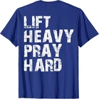 Lift Heavy Pray Hard, Gym Christian Gift For Christian T-Shirt Designed and Printed in USA Product Features: • Classic Look and Feel: This ultra cotton tee offer the timeless appeal of traditional cotton. The high-quality print enhances its casual appearance. • Material: Made from 6.1-ounce, 100% cotton. (Note: Dark Heather variant is 50% cotton, 50% polyester.) • Durability: Features double-needle stitching on the neck, sleeves, and hem for added durability. Designed for a roomy, unisex fit. • Print Type: DTG (Direct to Garment) • Manufacturer: Gildan 5000, 5000b (Made in USA) Shipping Information: • Handling Time: With POD(Print-On-Demand) product model, we typically require about 3 business-days handling time before shipping. In most cases, our handling time’s , rang e from 1-2 business days. • Delivery Time: • USA: Approximately 2 -6 business days • Canada: Approximately 6-10 business days (We currently don’t offer international Shipping) • Worldwide: Approximately 15-25 business days (We Currently don’t offer international Shipping) • Shipping Carriers: USPS and DHL • Note: Business days exclude weekends and holidays. Return & Exchange Policy: • Quality Guarantee: We stand behind the quality of our products and workmanship . Any defects or errors on our part must result in a refund/ replacement at no charge. • Conditions for Returns: Returns are generally not accepted for user errors such as incorrect selection of sizes, designs, or colors. Returns /Replacements are acceptable for damages such as poor printing results, incorrect size or design caused by us. • Note: Please reach out to us if there are any questions or issue s with your item, we’ll do our best to resolve any issue you might have. Note: • We’re glad to have your support! If you have a moment, y our honest feedback is very valuable to us. Thank you!