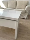 Great looking, modern, white laquered coffee table with adjustable top that goes from standard to higher up for closer use. great for working or eating from the sofa. There is storage space under the top.