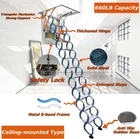 PreAsion®PreAsion Blue-white Attic Ceiling Ladder Ceiling Folding Ladder Stairs Carbon Steel Attic Loft Ceiling Extension Ladder 9.8ft Height 12 Pedals Retractable Attic Loft Wall Stairs 47.24x27.56in Load 660lbs Loft wall ladder stairs is becoming more and more popular recently because of its simple, elegant, practical, telescopic and small occupied area. The ladder stairs can be widely applied to loft and the top of the cottage. It is very convenience to go upstairs and go downstairs. Loft wall ladder stairs meet the needs of most people about fashion and concise lifestyle. Attention Before operating the stairs, please read the instruction book thoroughly, and retain it for future reference. Before you purchase it, please clearly understand the SIZE of the product(47.24*27.56IN). Specifiction Color Blue-white Wall Rough Open Size 47.5*27.5 in. Floor to the Bottom of the Opening Height 8.2 to 9 ft. Thickness of Wall Rough Open Size greater-than-equal 5.5 in. Step Size 15.7 * 5.1 in. Width from the Hole Edge to Wall greater-than-equal 1.97 in. Length of the Rod 46.5 in. Weight Capacity 600 lb Package Weight 200lb Features High quality environmental protection material. Key position adopts thickened material. Electrostatic coating process, anti-corrosion and antioxidant. Hydraulic rod and spring lets door-closing mute and andante. Rotational door lock becomes anti-lock, safe and convenience. Rubber anti-slide foot makes up or down safe and does not spoil the floor. Maintenance Information Users are responsible for the proper operation and maintenance of the equipment they use. Some equipment will quickly become damaged and unsafe if abused or subjected to improper demands. If equipment is regularly maintained and not abused, you will get the maximum safety and service performance from loft wall ladder stairs. Do not overload ladder stairs. Do not knock it vigorously. Do not disassemble it casually. Do not open the tripod forcibly. Do not play movement on ladder stairs. These uses create severe impact and shock loads that may lead to steps and equipment failure. Installation Instruction Put the lock-rod into the lock hole. Lock the lock-rod by pin. Tighten the bolt of the four corners. Pull the ladder stairs up and fasten the lower edge of the hole. Put metal triangle panel on bolt and tighten it. Watch out when you install the ladder stairs. Do not stand under the hole when you install the ladder stairs. Check Equipment Periodically turn ladder stairs on its end or side and check the following: Look for broken welds or deck boards. Tighten loose nuts and bolts. Look for ladder stairs frame distortion caused by overloads and impact loads. All the check is for your safety. Item Include d Attic Ladder Pull Down Ceiling Stairs Blue-White Folding Loft Access Stairs Lockable Attic Extension Ladder with Pull Rod 12 Steps Max 9.84ft Height Carbon Steel (27.56 x 47.24'') #02TO2443 Shipping & Handling Details Default Shipping Cost or Free Shipping Information: ▲ Default shipping cost or free shipping service is only for the lower 48 United States by UPS Ground or USPS. Other areas or needs other shipping ways, please contact us. ▲ Buyers from Guam, Puerto Rico, Virgin Islands, American Samoa, Alaska, Hawaii, PO Boxes, APO/FPO addresses or other countries/areas, there WILL be extra shipping costs, please contact us for more detailed information. ▲ Please make sure your address is valid for both UPS and USPS services. Any costs incurred because of incorrect or undeliverable address should be undertaken by buyer. Handling Time: Shipping is usually made in 1-3 business days after payments cleared. Orders are processed from Monday-Friday; Not on the weekends & public holidays. Sales tax / Customs duties: Any sales taxes or Customs duties are not included. If came out, they must be undertaken by the buyer. Sales Tax of 8% will be applied for orders shipped within the state of California. Damage In Shipping: Email or call us First! We will work with you to get the case resolved in the fastest method. Return / Refund If you are not 100% happy with your purchase, please contact Us. Please don't directly opened a request or case without informing us, or else, we will do some discounts on the warranty and other sales-services later on. Hope for your understanding. Returns & Exchanges ▲ All returns must be made within 30 days of delivery date. Items must be in new, unused condition, with all original materials included with the shipment. A partial refund may be applied for opened or damaged items, depending on the condition. ▲ Items returned under the buyer’s remorse: The return shipping fee must be covered by the buyer; The original shipping cost will also be deducted from the refund. 15% restocking fee of the items purchase price will be charged. ▲ Returns that are the result of our seller's error: Buyer will receive a full refund of the item as well as shipping charges ▲ All returns require a RA (Return Authorization) number that will be given by our seller. Please contact with us at first for more details. Defective & Damaged Products ▲ If product was received damaged or not as described, please send us some pictures or videos, so we could well understand your problem, then solve them for you ASAP. Besides, it's much helpful for us to claim with UPS, remind our related department to pay much more attention to packaging later on. Hope for your understanding. ▲ Replacement or refund of defective or damaged products can only be returned in exchange for the exact same product, or else, the purchase price will be refunded back to your original payment method. ▲ If an item is received damaged, customer service must be contacted within 7 days of receiving your item. All returns require a RA (Return Authorization) number as above. Payment eCheck Issues: Payments via eCheck do not clear immediately. Usually you will wait 5-7 days after checkout for it to clear. Then we will arrange shipments 