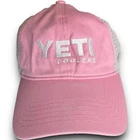 Pink Yeti Coolers Mesh Trucker Hat Cap Adjustable Snapback Distressed YETI Trucker Hat, One Size, Pink - Unisex Adults. This hat features an adjustable snapback, mesh back for breathability, and a solid pattern. Constructed with mesh material, it's suitable for outdoor activities and casual wear. Condition: excellent pre-owned, only flaw to be noted would be the tiny mark under brim of hat as shown in photos although not noticeable when worn nor does it effect the efficiency of this cool cap! Keywords: YETI, trucker hat, adjustable, snapback, mesh back, breathable, unisex, pink, one size, outdoor, casual, pre-owned, solid pattern, hat, cap.