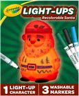 LIGHT-UPS SANTA: Features 1 Light-Ups Santa, 3 Washable Markers (Blue, Black, Lime Green), and an Instruction Sheet. DECORATE YOUR SANTA: Draw your design, illuminate it, and then wipe with a damp cloth to start anew! Use your favorite Crayola Ultra Clean Washable Markers (sold separately) for even more color options! ULTRA CLEAN WASHABLE MARKERS: Add splashes of color with the included markers, or decorate using your favorite Crayola Ultra Clean Washable Marker colors (sold separately). These markers wash easily from skin, clothing, and most painted walls. ERASE & RE-COLOR: The erasable surface allows for creative experimentation with an endless array of designs. LIGHT UP SANTA TOY: Flip the switch and watch as your Santa lights up in Red, White, and Lime Green! (Battery operated with a 4-hour timer). DURABLE & SHATTER-RESISTANT: The Light-Ups Santa is made of durable & shatter-resistant material. HOLIDAY GIFT FOR KIDS: This set makes the perfect stocking stuffer gift for kids ages 4 and up. Light up the holiday season with the recolorable Light Ups Santa from Crayola! This all-in-one toy, holiday decoration, and reusable coloring activity, gives kids a new winter tradition to celebrate. First use the 3 Washable Makers to color directly on the included santa. Give him some stylish winter clothes, decorate his hat, or choose whatever look suits him best that day. You don’t have to worry about making mistakes or changing your mind, because it’s easy to erase your designs with a damp cloth and start again as many times as you choose. When he’s ready for display, let him glow in Red, White, and Lime Green! He would make the perfect stocking stuffer gift for kids, ages 4 & up!