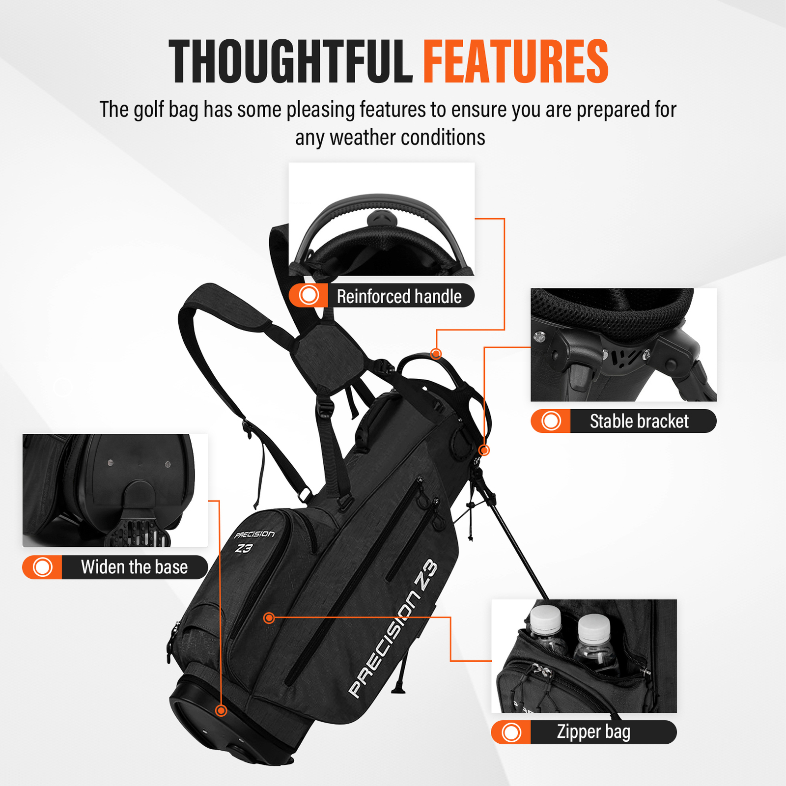 Golf Stand Bag 14 Way Lightweight Golf Club Bags w/ Full-Length Dividers & Stand Bullet Points: Easily Adjustable Straps: This ergonomically designed golf stand bag is equipped with 360-degree rotating discs and self-adjusting dual shoulder straps for maximum mobility, while the four-way self-adjustment removable strap allows for quick customized fits. Efficient Storage: Keep your golf must-haves organized and easily accessible with the golf stand bag, featuring large side pockets, a lined valuables pocket, and a front magnetic pocket. Functional Golf Bag: Boasting a towel loop and cart loop, this golf stand bag comes with a strap sticker attachment, umbrella stand, and rain cover for superb gear protection. Stay organized while enduring wear and tear on the greens. Non-slip Kickstand Legs: Your golfing experience has just gotten better with this stand bag. The sturdy round base stands securely on level ground while protecting your clubs on different terrains. Quick-release and non-slip kickstand legs with straps provide additional balance and comfort. Convenient to Carry: Experience ease of movement on the course with this golf stand bag, which also comes with an extra crossbody strap made of sturdy polyester fabric and PU leather, providing lightweight comfort and long-term use. Experience comfortable carrying with this ergonomically designed golf club bag made of fine polyester fabric and PU leather. Stay organized on the course with Multiple Pockets and Large Space for all your must-haves. Its sturdy round base stands securely on level ground, protecting the club. Comes with an umbrella stand and rain cover to keep you prepared on wet days. Get ready to elevate your game with this Golf Club Bag. Product attributes Loading range: clubs + balls Material: Nylon Is it waterproof: yes Applicable scenarios: indoor/outdoor golf courses Colour: Black Types of sports bags: professional sports bags Packing List: 1* Golf Travel Bags We accept PayPal payment,PayPal Credit,Credit card or debit card and so on. Payment should be completed within 4 (Four) days of auction closing. Or unpaid dispute will be filed for closing auction. We will leave a positive feedback immediately after payment is received. We appreciate a positive feedback as much as you do. If for some reason there is any issue with the purchase, please contact us prior to leaving feedback, we will be glad to work together and provide a satisfying solution. 1. We ship to your eBay address. Each package will be shipped via FedEx or UPS 2-8 business days with tracking number 2. Please check your shipping address carefully before checkout, it can't be changed if order completed. 3. Shipping within 1 business days once payment completed. Orders placed on weekend will be delay 1-2 days. 4. Please allow 6 business days for delivery to any destinations. 5. As a buyer, it is your duty to pay the tax when you make an order from abroad. Our price does not include taxes, VAT, or other hidden charges. 1. We maintain high standards of excellence FIVE STAR and strive for 100% customer satisfaction! 2. Positive Feedback is very important to us. We hope that you contact us immediately BEFORE you give us neutral or negative feedback, so that we can satisfactorily address your concerns. 3. We promise to offer the best price and high quality products. 1. If you have any questions, please send a ebay message. 2. We will reply within 48 hours of your email. Weekend will be delayed a bit.