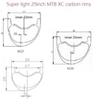 A purpose built XC wheelset without limitations. Light enough to race, strong enough to ride daily. Reduced fatigue and a more compliant ride through shape, laminate, and spoke-hole optimization. Novatec OEM super light disc brake hubs. PSR2015 Triple butted spokes Super strong but as light as sapim cx ray If you decide to purchase, please choose from the following order spec template and leave a message to us. WEAVE: 3K or UD FINISHING: Matte or Glossy Front Hub Size: 15x100 or 12x100 or 9mm x 100qr Rear Hub Size: 12x142 or 10mm x 135qr Hub compatible: SHlMANO 9/10/11s or SHlMANO MS or Sram XD 2 years warranty for the rims. Maybe not the cheapest, but the best quality and after sale service. Hand-built carbon mountain bike 29er XC rims 27mm/30mm wide hookless rim tubeless compatible, super light Tubeless Ready (TLR) rims allow for quick transition to a tubeless system The offset spoke bed reduces wheel dish for a stiff and stable performance Offset Asymmetrical Design Asymmetrical rims build up into stiffer, stronger and more reliable wheels by improving the bracing angles of a dished wheel and equalizing the spoke tensions between the drive and non-drive side spokes. On a Road bike wheelset with disc brakes, both the front and rear wheels have significant dish. With traditional rims,the rim is centered (or dished) by decreasing spoke tension on one side relative to the other so that the rim is pulled into center. Rim section Specifications Set weight 1150g+/-20g (XC27) Max recommended rider weight 250lbs Front Wheel Weight 510g Rim Used HT29XC01 Hub Used Velosa 411 Rim Depth 25mm Rim Width 27mm/30mm/33mm Inner Width 22mm/25mm/27mm Skewer type 9mm QR/12x100/15x100/15x110 Spokes Pillar PSR2015 Spoke Count 24/28 Spoke Pattern 4 x cross Spoke Length 298mm Max Tire Pressure 60psi Max Tire Pressure 4bars Track Adaptable No Brake Surface n/a Nipples Taiwan CN® alloy nipple External Nipples Yes Rear Wheel Weight 640g Hub Used Velosa 412 Rim Used HT29XC01 Rim Depth 25mm Rim Width 27mm/30mm/33mm Internal Width 22mm/25mm/27mm Spokes Pillar PSR2015 Spoke Count 24/28 Spoke Length Non-Drive Side 298mm Spoke Pattern Non-Drive Side 4 x cross Spoke Pattern Drive 4 x cross Spoke Length Drive 300mm Max Tire Pressure 60psi Max Tire Pressure 4bars 11-speed compatible Yes Track Adaptable No Brake Surface n/a Nipples Taiwan CN® alloy nipple External Nipples Yes Hub Compatible SHlMANO 9/10/11s Sram XD Detailed Pictures
