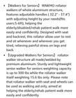 RINKMO ROLLATOR WALKER FOR SENIORS, MOBILITY WALKING AID FOR SENIORS OR ADULTS INCREASES INDEPENDENCE FOR EVERYDAY LIFESTYLE ACTIVITIES AND NEEDS....... THE RINKMO ROLLATOR WALKER IS DESIGNED FOR SENIORS PROVIDES ADJUSTABLE HANDLES TO FIT USERS WHO ARE 5-6 FEET TALL PROVIDING GOOD POSTURE AND COMFORT....... RINKMO DESIGNED WITH A WIDE PADDED SEAT 18"X 10", PADDED BACKREST ALLOWING YOU TO SIT AND REST WHEN EVER YOU GET TIRED, RELIEVING PAINFUL STRESS ON LEGS AND BACK...... RINKMO FRAME STRUCTURE IS MADE AND WELDED FROM PREMIUM WHOLE ALUMINUM, OFFERS STRONG, DURABLE, STABLE, SAFE BODY FRAME FOR USER WON'T TIP OVER...... COMPACT GREAT FOR TRAVEL, EASY FOLDING DESIGN, LIGHTWEIGHT WEIGHS ONLY 15.6 LBS, BUT STRONG HEAVY DUTY BUILT SUPPORT’S 300LBS....... DUAL BRAKING SYSTEM: DUAL BRAKING SYSTEM DESIGN, PULL TO APPLY THE BRAKES AND PUSH DOWN TO LOCK THE REAR WHEELS WHEN SITTING DOWN.... PROVIDES YOU A SMOOTH RIDE INDOORS AND OUTDOORS WITH IT'S 8" TPU WHEELS, EASY MANEUVERING THROUGH ALL OBSTACLES AND SURFACES........ CONVENIENT STORAGE BAG AND CANE/UMBRELLA HOLDER FOR SENIORS: The RINKMO ROLLATOR WALKER FOR SENIORS FEATURES A REMOVABLE NYLON SHOPPING BAG FOR YOUR PERSONAL ITEMS AND A CANE/UMBRELLA HOLDER TO LEAVE YOUR HANDS FREE...... THE RINKMO ROLLATOR WALKER AIMS AT HELPING THE ELDERLY/REHAB PATIENTS WALK MORE EASILY AND CONFIDENTLY..... THE RINKMO ROLLATOR WALKER FOR SENIORS HAS A HIGH POSITIVE STAR RATING PERFORMANCE FROM TRUSTED CUSTOMER'S WORLDWIDE...... BRAND NEW-RED- I OPENED THE BOX TO PROVIDE A PICTURE OF THE ROLLATOR WALKER......