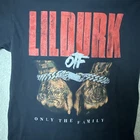 Lil Durk "Only The Family" graphic tee in black, featuring bold red text and chained hands design. Streetwear-ready with strong hip hop vibes, perfect for rap fans and collectors. Sized Medium on tag, fits true to size based on flat measurements. Great piece for casual wear, concerts, or adding to your rap tee rotation. Preowned with normal wear. Graphic print is bold and clear. Color may vary slightly due to lighting. Measurements (flat): • Pit to Pit: 17" • Length (Shoulder to Hem): 27" • Sleeve: 8" All measurements are approximate. See photos for details Material / Made In Info: 100% Cotton. Made in Honduras. Size: Medium. Brand: Lil Durk OTF. At Simply1Awesome, we strive for 100% customer satisfaction. If you have any questions — we're always here to help. #RapTee #OTF #Streetwear #HipHop Streetwear, Rap Tee, Concert Tee, Hip Hop, Graphic