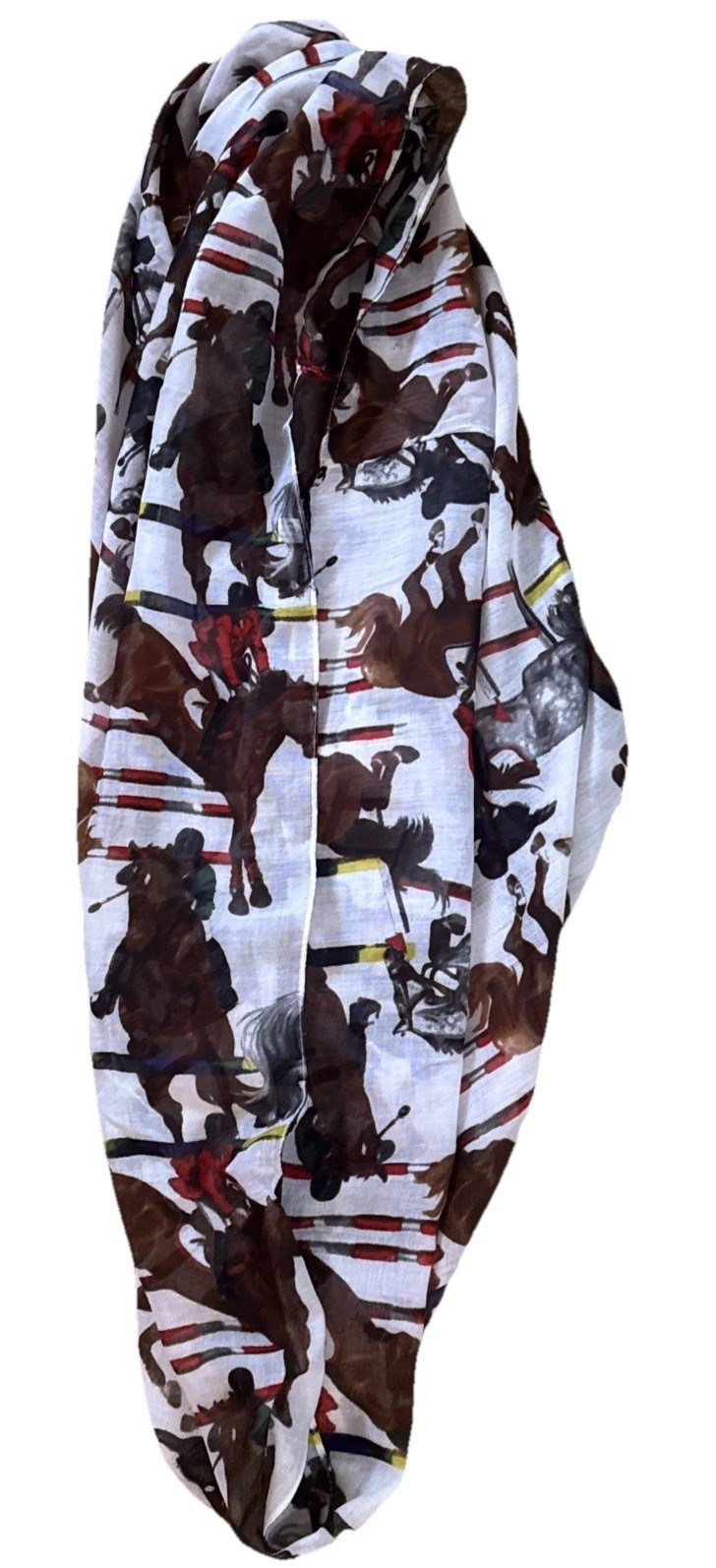 Just got this gorgeous infinity scarf and I'm obsessed! The horse pattern is so charming and the colors are vibrant. It's incredibly soft and keeps me perfectly cozy. Love how versatile it is - I've worn it looped twice for a casual look and draped long for evenings out. The quality feels amazing and it adds such a fun, stylish touch to all my outfits!
