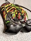 Liliana Rainbow Sandals Black Red Green And Yellow Womens Size 8 Tie Up Leg fair condition the laces have some peeling as shown in photos SKU(A136)