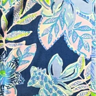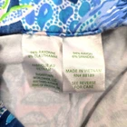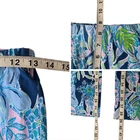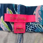 Lilly Pulitzer Blue Floral Bohemian Lightweight Stretchy Flare Pants. Size XS. Floral and leafy pattern throughout, slight flare hem, elastic waistband, no pockets with loose fit. *Flaw* bottom hem on the front left leg- The hemline is partially detached. [Possibly altered] Measurements are approximate. Pants in good preowned condition. waist 13" rise 9" length 39" inseam 30" material 94% rayon 6% elastane stretch Yes N739 1/20
