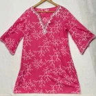 Lilly Pulitzer Pink White Coral Reef Beaded Cotton Shift Dress Bell Sleeves Circa 2009 100% Cotton *Previously owned. There is a couple of small pink beads missing and there is one or two loose threads these can be viewed in the photos provided. No stains, holes or rips that I could not. Non Smoking. Sold as seen in pictures. Feel free to reach out with any questions prior to purchase.