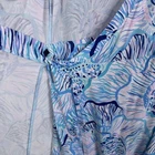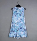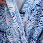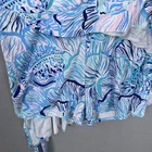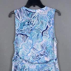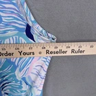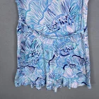 Lilly Pulitzer Romper Womens XL Blue Floral Wrap Sleeveless Ruffle Hem Tropical Gently worn with fabric clean and stretchy, colors vibrant throughout. No stains, holes, or pilling. Interior labels intact; no original retail hang tags. Brand: Lilly Pulitzer Style: Womens sleeveless one-piece romper with a wrap-style surplice V-neckline and attached shorts. Size: XL (per inner size tag). Color/Pattern: Multicolor blue tropical floral print with shades of light blue, navy, and pastel pink. Material: Soft stretch jersey knit made from 96% rayon (viscose) and 4% spandex; unlined. Details: Surplice front with small hidden snap closure, self-tie wrap belt at the waist, ruffle hem at the leg openings, comfortable pull-on style, tropical vacation and travel ready look. Identifiers: Style 005005; RN 89189; made in China, production code 544 Apr-20. 23943 Measurements: Previous washings may change sizing on the tag. Refer to photos above for all measurements. Compare our measurements to one of your favorite garments. Measurements are approximate. All items are bagged and sealed after being photographed, then stored in a smoke free environment. Washed per eBay standards. I carefully package and ship daily. Contact me with any questions. Thanks