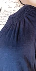 This size medium Lily dress measures 31" in length from the top seam of the shoulder to the bottom hem and 15" from pit to pit. Cotton modal blend. It has 1/4 button in the front and ruched shoulders. It does have a tiny hole; please see all photographs as they are part of the description. Shipped with USPS Ground Mail. M33