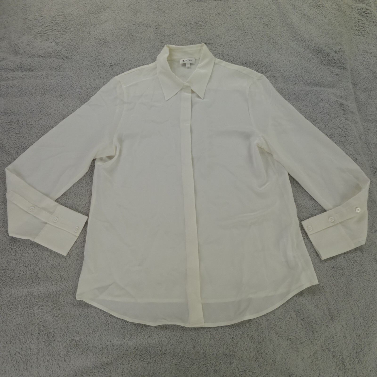 Lily Silk Blouse Womens Small White Cream 100% Mulberry Silk Charmeuse Basic Concealed Placket Minimalist Capsule Wardrobe Quiet Luxury. Top is in excellent, like new, pre-owned condition, no stains, tears, or signs of wear noted, please review all photos. See photos for measurements. If we missed something, don't worry, we offer free returns. Just indicate, "just didn't like it," for any reason, and we'll pay for the return. Thanks for visiting!
