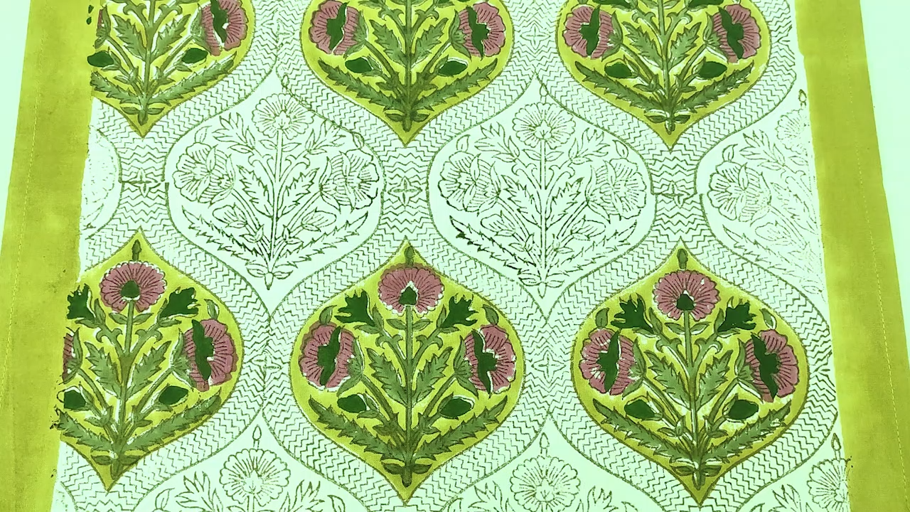 WELCOME Beautifully handcrafted Wooden Block Printed Cotton Table Cover, created by local artisans of India, designed using classic, ethnic and royal prints as inspirations. Our block printed textiles are not only Eco-friendly but also sustainable made using finest quality cottons and best quality organic printing colors. This Table Cover is the perfect go-to shot for accessorizing your table. It stands out as a statement piece, delighting the surrounding space with fine aesthetics. To check our more of our product range, please visit our shop link - https://www.ebay.com/str/homespuncraft Product Details - Design: Floral, Royal & Classic Technique / Print: Wooden Block Printed with Hands Material / Yarn Type: 100% Natural Cotton Color: Lime Green and Pink Dimensions/Sizes Available - Shape: Rectangle/Square 4 Seater: 60 X 60 inches (150 X 150 Cm.) 4 Seater: 72 X 72 inches (180 X 180 Cm.) 6 Seater: 60 X 90 Inches (150 X 225 Cm.) 6 seater: 48 x 102 Inches (120 X 260 Cm.) 8 Seater: 90 X 90 Inches (225 X 225 Cm.) 8 Seater: 72 X 108 Inches (180 X 275 Cm.) 8 Seater: 110 X 110 Inches (280 X 280 Cm.) 10 Seater: 72 X 118 Inches(180 X 300 Cm.) 12 Seater: 72 X 135 Inches (180 X 345 Cm.) 12 Seater: 72 X 140 Inches (180 X 355 Cm.) 12 Seater: 80 X 120 Inches (200 X 305 Cm.) 14 Seater: 72 X 160 Inches (180 X 405 Cm.) 16 Seater: 72 X 180 Inches (180 X 460 Cm.) 16 Seater: 72 X 190 Inches (180 X 480 Cm.) Shape: Round 4 Seater round: 60 X 60 Inches Round (150 X 150 Cm. Round) 4 Seater round: 72 X 72 Inches Round (180 X 180 Cm. Round) 6 Seater round: 90 x 90 Inches Round (225 x 225 Cm. Round) 8 Seater round: 110 x 110 Inches Round (280 x 280 Cm. Round) Table Runner - Wide - 20 Inches for all sizes (50 Cm. for all sizes) Length - Same length as the length of the table cover selected For Example, for a 72 x 140 Inches table cover order, the runner size would be 20 x 140 Inches. For a 60 x 90 Inches table cover order, the runner size would be 20 x 90 Inches and so on… Napkins: 16 X 16 Inches (40 X 40 Cm.) Table Mats: 13 x 18 Inches (35 x 45 Cm.) Number of Napkins and Table Mats shall be same as per the number of seater ordered. For Example, for a 4 seatertable cover ordered, it would be a set of 4 napkins and 4 table mats. For a 6 seatertable cover ordered, it would be a set of 6 napkins and 6 table mats and so on… Wash & Care Recommendations Wash Separately Preferably If Machine wash: Gentle cycle at 30°C If Hand wash: In Cold Water with mild or organic liquid detergents and air dry for longer durability and colour vibrancy Tumble dry: Low setting Iron: Low heat setting //Do not Soak. Do not use harsh detergents. Do not bleach. This Hand Block Printed Cotton Table Cover can be used for: Dining Table ,Coffee Table , Centre Table , etc NOTE-1 - All our textiles are handmade and are worked on by multiple artisans and the product goes through multiple hand-processes. Hence, there could be a very little variation than the actual look from the photos, which indeed is the characteristic of this handmade textile giving it an authentic handmade look. NOTE-2 - Actual colors may slightly vary from the colors shown in the pictures due to different monitor screen settings, photography setup with natural lights and the nature of the product, being 100% hand made. NOTE-3 - Also please note that as per the policy mentioned on Ebay on the product page,any import duty, taxes occurred in the client's country will be borne by the client. Normally it does not occur. Thank You very much for visiting our store.