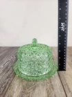 This lime green pressed glass butter dish in the Daisy and Button pattern is the perfect mix of functional charm and glowing whimsy. Made from selenium glass, it glows a brilliant pink under 395nmblack light—a safe, non-radioactive alternative to uranium glass. With its cheerful color and vintage-inspired style, it fits beautifully in cottagecore, grandmillennial, and retro farmhouse kitchens. Use it for butter, snacks, or display—it’s a must-have piece for lovers of UV reactive glass and romantic vintage aesthetics. *Excellent condition!