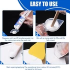 SPECIALIZED FIBERGRASS KIT - Our marine fiberglass repair kit has mega adhesion to effectively repair fiberglass boat damage on horizontal and vertical surfaces (Above The Waterline), perfectly repairing scratches, cracks and holes on the boat. Excellent UV resistance and waterproof protection, specially designed to cope with exposure to sunlight and humid environments, making it suitable for various types of boat repair tasks such as motorboats, surfing boats, kayaks, yachts, sailboats, canoes. VARIETY OF APPLICATIONS - The gelcoat repair kit has good compatibility with surface damage repair of fiberglass, carbon fiber, acrylic, plastic, porcelain, stainless steel, stone, aluminum and other materials. Not even for boat, if you encounter the above materials you need to repair in your life, use this product to started doing a bunch of small repairs around the house immediately. DURABLE AND LONG-LASTING QUALITY - We use two-component fiberglass filler for detachable open packaging, ensuring the activity of the product during storage and its reusability. With outstanding mega adhesion, it can ensure the perfect fit between the adhesive and the repaired wound, and maintain a steel like hardness and toughness for a long time. It is a perfect marine fiber glass simple repair kit. SIMPLY TO USE - The marine fiberglass repair kit equipped with complete accessories, we use the push rod to squeeze out A and B simultaneously into the silicone cup. After 30s mixing, start repairing and applying. The operational time is about 20 minutes (25℃). Fully curing time is 24 hours. When it solidifies, its hardness is as hard as steel. So we equipped sandpaper to polish the surface for better fusion effect. ECONOMICAL AND PRACTICAL - The same expenditure can achieve greater capacity without sacrificing quality. If you are not satisfied with your purchase or if it arrives damaged, don't hesitate to reach out to us. Click 'Add to Cart' now and enjoy the journey of perfect repair experience.
