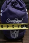 The Limited Collectors' Edition Purple Mesh NFL Crown Royal Bag is a unique and exclusive item featuring the iconic Crown Royal logo in purple. This original piece of advertising memorabilia is themed after the distillery and is made in the United States. Perfect for fans of Crown Royal and NFL enthusiasts alike, this bag is a rare find and a must-have for collectors. White Embroidered Logos