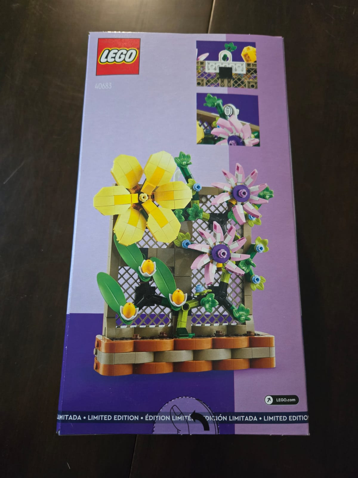 This is a brand new, unopened/factory sealed limited edition Lego promotional item: Flower Trellis Display (40683). This has been stored on a bookshelf in a smoke free home since it was received during the promotional period.