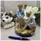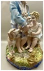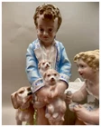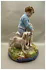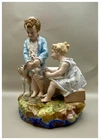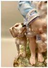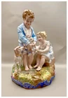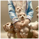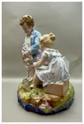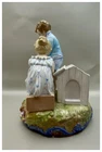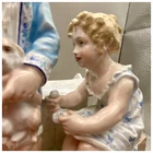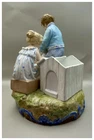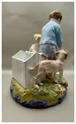 This playful spill vase is an antique gem from the Limoges region in France dating from 1868 to 1883. Semi gloss finish. The piece was modelled by Paul Duboy for Gustave Demartial and Tallandier manufacturer, who prided itself for in being artist first and often used their talents to decorate vases and figurines. The piece features a delightful scene of a young boy, adorned in a blue coat embellished with flowers, standing before a doghouse cradling two playful puppies. Beside him stands the mother dog, tenderly gazing at her offspring, while a young girl in a floral dress sits nearby, eager to interact with the adorable pups. The full piece is rendered in vibrant colors and the doghouse doubles as the spill vase, with the artist's signature, Paul Duboy, etched into the ground. A perfect addition to any collection, this set is sure to delight collectors and would make a thoughtful gift for a special occasion or loved one. Limoges porcelain, renowned for its exceptional craftsmanship and delicate beauty, originates from the Limoges region of France and has been a symbol of luxury since the 18th century. Various companies in the Limoges area have contributed to the legacy of Limoges porcelain. Renowned for its purity, whiteness, and the ability to showcase intricate hand-painted designs, Limoges porcelain remains highly sought after by collectors and is often utilized for fine china, decorative pieces, and luxury tableware. Paul Duboy (1830-1887) was a French sculptor known for his bronze and porcelain sculptures. He was famous for his work in Limoges, France, particularly for his porcelain modelling work for Limoges porcelain manufacturers. His work often depicted elegant figures and mythological themes. His works are highly regarded for their artistic quality and are sought after by collectors of Limoges porcelain. Spill vases, which were popular in the 19th century, were designed to hold thin sticks or spills used for lighting candles, pipes, or fires. These decorative vessels varied widely in design, ranging from simple ceramic containers to ornate pieces made of glass, metal, or porcelain. Spill vases were both functional and decorative, commonly displayed in homes and are now sought after by collectors. Condition – This piece is in remarkable condition given its age. We did find any chips, cracks, or crazing. Please see photos for additional information about the item condition. The piece measures 6.5" (L) x 6.5" (W) x 8.5” (H). Our eco-friendly packaging ensures that your order arrives safely while minimizing its impact on the environment! Please note that all of our vintage items are pre-loved and may show signs of wear and age. We strive to accurately describe each item's condition and any flaws, but please keep in mind that vintage items are not always in perfect condition. If you have any questions please don't hesitate to contact us. We want you to be completely satisfied with your purchase and will do our best to provide you with all the information you need to make an informed decision.