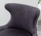 Specifications Place of Origin China Main Color Gray Main Material Polyester Dangerous Goods #dangerFlag# Dimensions & Weights Assembled Length (in.) 23.00 Assembled Width (in.) 23.00 Assembled Height (in.) 33.50 Weight (lbs) 15.60 weight capacity 200 lbs Product Features Dense foam are used to pad the backrest and seat, upholstered with a lush velvet fabric in your choice of color Curved chair back features button tufting, accented by the nailhead trim Solid rubberwood legs finished in a rich black color with the gold-tone metal electroplated on the end Dimension: 24' W x 23'D x 32.5'H. Seat dimension: 19.75' W x 17.5'D x 20'H. Seat cushion thickness: 5.5' Assembly needed. Photo may be slightly different from the actual item in terms of color due to the monitor's display Description Lindale Contemporary Velvet Upholstered Nailhead Trim Accent Chair, Gray Add a contemporary accent to your home office or living area with the Lindale Contemporary Velvet Upholstered Nailhead Trim Accent Chair. This accent chair features a simple silhouette that is accentuated by elegant velvet upholstery. Narrow legs extend from the seat, finished in rich black color with the gold-tone metal electroplated on the end. A touch of modern is included with a nickel nailhead trim, lining the outside of the chair. With your choice of available fabric colors, l have fun choosing the right look for your home.