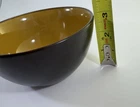 Place setting of Linden Street Hearthridge Honey dinnerware. Set includes 1- 11” dinner plate, 1- 8” salad plate, 1 bowl and 1 mug. Dishes are dark brown on the outside and a nice honey color on the tops/inside. Condition note: there is crazing on all the dishes.