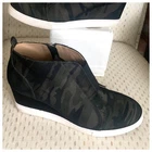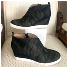 Linea Paolo Womens Felicia Boot Size 10M Wedge Heel Camo Fabric Sneaker Bootie. 2.5” wedge heel; .5” platform. Easy side zip entry; wide elastic gore for a comfortable custom fit. Leather lining; comfortably cushioned insole. Slip-resistant rubber sneaker bottom. 2.75" shaft height. Little to no wear on soles. In excellent pre-owned condition. Message us with any questions. Thank you for stopping by!