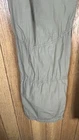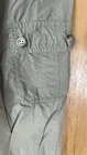 Flaw - there are 2 small bleach spots on the left back thigh, crotch needs a few stitches on the sewing machine These Lineaemme jogger leg pants in size 10 feature a solid green color and are made of 100% cotton canvas fabric. They have a 34" waist size and an 11" rise, with a comfortable regular fit and elastic ankles. The pants are designed with cargo pockets for added convenience while hiking or exploring the outdoors, enhanced by button and zipper accents. The nature, rock, outdoors, and retro theme combined with machine washable care instructions make these pants a versatile choice for all seasons.