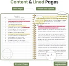 Sturdy Construction: Our Lined Spiral Journal Notebook is built to last with a sturdy metal twin-wire binding and a tough hardcover. The water-resistant cover shields your notes from damage, while the double-wire design allows for easy folding and flat laying. High-Quality Paper: Crafted from 100 GSM thick, ink-friendly paper, our notebook prevents ink bleed-through and ghosting. It accommodates various pens, including ballpoint, gel, and fountain pens. Each page features a day header for effortless date tracking. Organized and Functional Design: With 140 lined pages and a 6-page blank table of contents, our notebook offers ample space for note-taking and easy referencing. An inner pocket keeps miscellaneous items secure, and an elastic closure band ensures the notebook stays closed when not in use. Versatile Usage: Suitable for office, school, and home environments, our notebook is perfect for journaling, note-taking, drawing, goal setting, Bible, and planning. It's a thoughtful present for friends, family, classmates, and colleagues. Medium-Sized Portability: Measuring 6 inches x 8 inches, our medium notebook strikes the perfect balance between portability and functionality. Its sturdy construction and aesthetic design make it an ideal companion for all your writing endeavors.