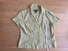 Linen-blend short sleeve button front top Vintage Missing last button (see photos) Measurements in photos Comes from pet-free, smoke-free home Will consider offers. This elegant top from Norton McNaughton features a stylish puff sleeve design and a notched collar, all in a vibrant green hue. The button-down style offers a fitted silhouette, making it a versatile addition to any wardrobe. Perfect for both casual and formal occasions, this shirt combines comfort with a touch of sophistication.