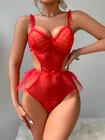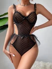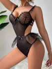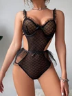$ 3.69Sexy lace mesh open cup bodysuit for women - sheer party sleepwear